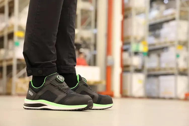 The JALAS Tempus 5668 is a lightweight, sporty safety shoe built for comfort, breathability, and dependable protection throughout long workdays. Its ventilated upper and soft interior keep your feet cool and supported, while the BOA® Fit System delivers quick, precise adjustability that stays secure as you move. With advanced shock absorption and durable materials designed for demanding environments, it’s a shoe that keeps up with your pace, now with fresh green details for a modern look.