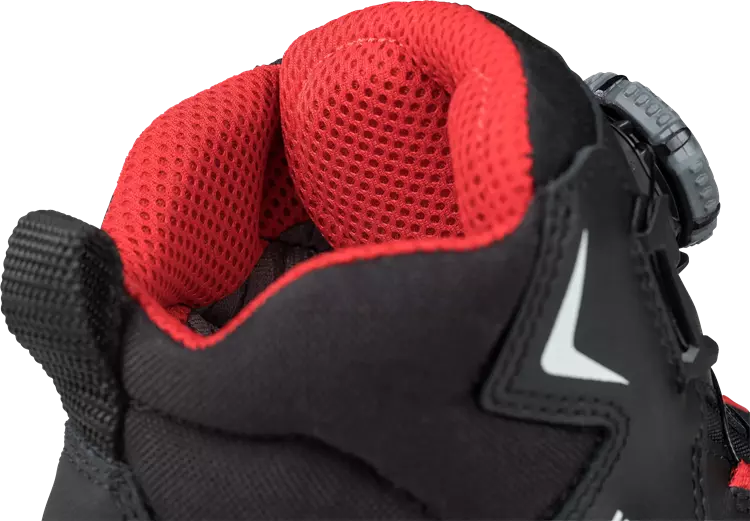 Mid‑cut design with built‑in ankle support plus a padded and polstered shaft edge, bellows tongue, and ergonomic shaping for long‑day comfort.