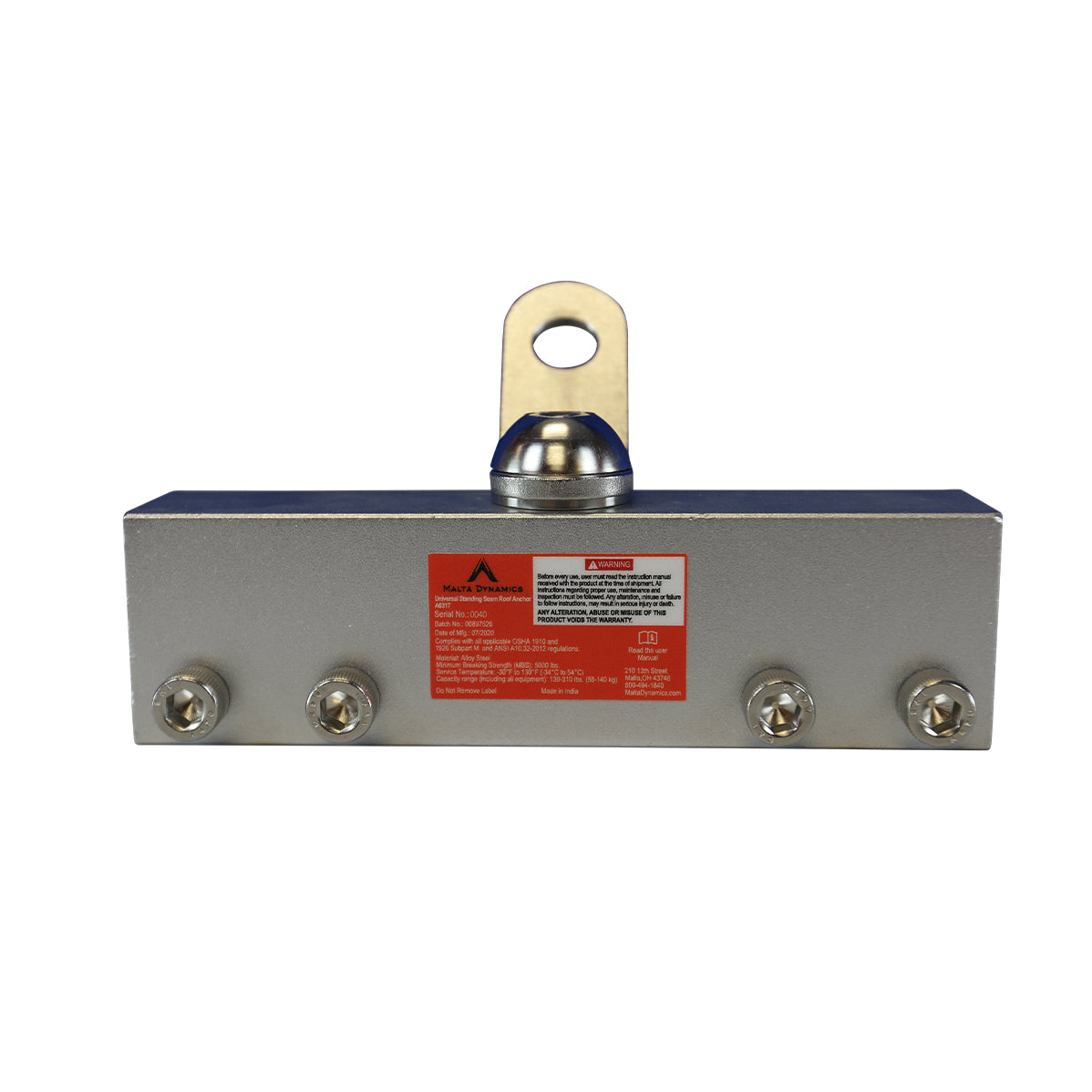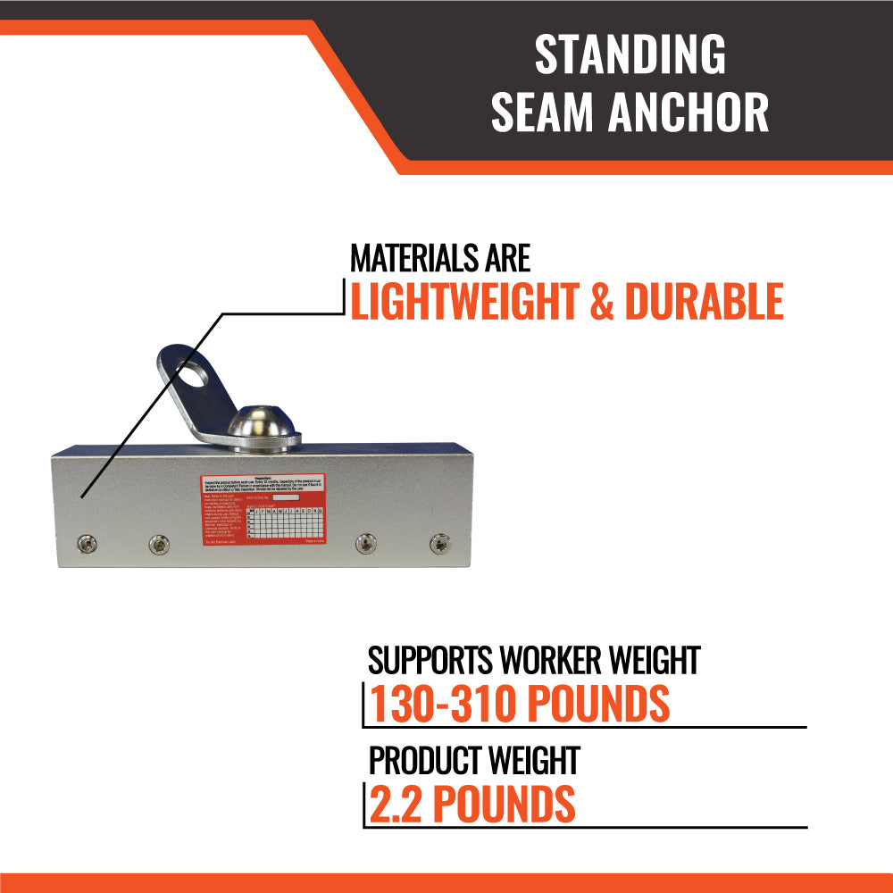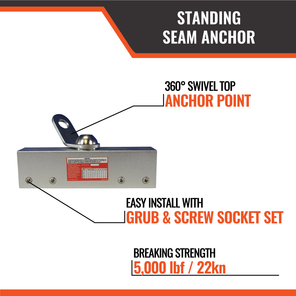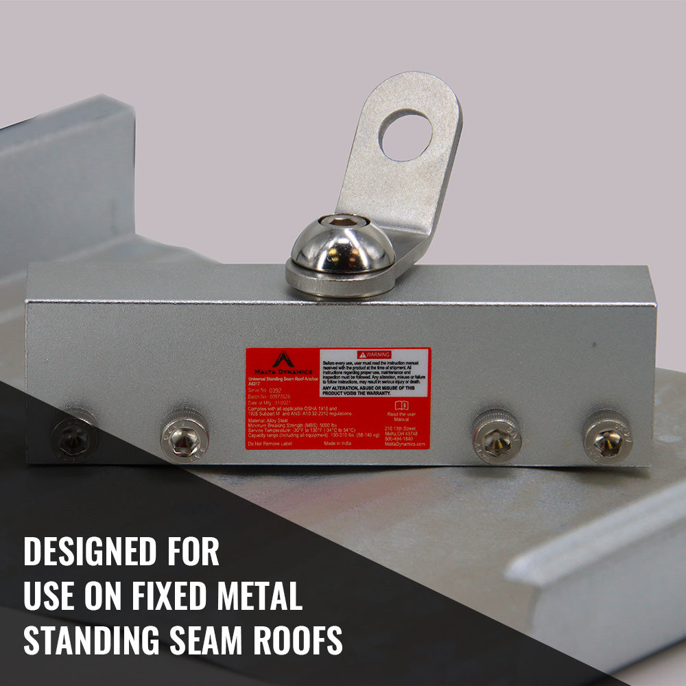 The Malta Dynamics Standing Seam Roof Anchor provides a safe, non-penetrating anchorage solution specifically engineered for metal standing seam roofs. Lightweight, easy to install, and built for durability, this anchor offers 360° mobility through its swivel connection—allowing workers to move freely while maintaining continuous fall protection. Ideal for construction, maintenance, and inspection work on both commercial and residential metal roofs, it keeps your team secure without compromising the roof’s integrity.
