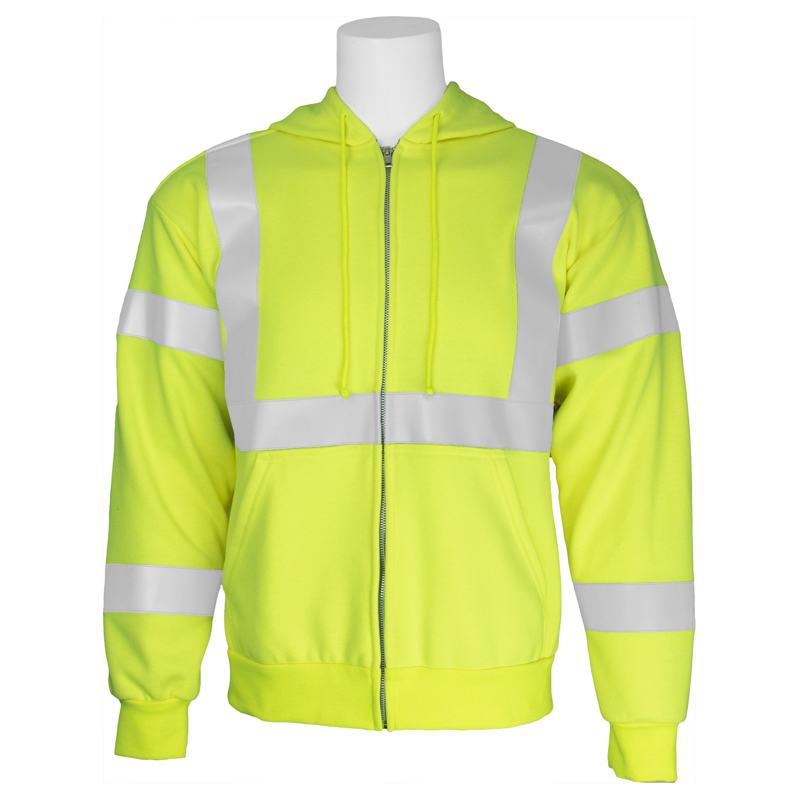 - High-visibility material with reflective piping meets Type R, Class 3 standards