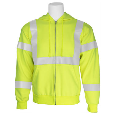 The Delta Plus 9506IFR Class 3 Zip Front Hoodie combines high-visibility protection with inherent flame resistance for professionals working in hazardous environments. Constructed from 10-cal CAT2 FR fleece, it features a contoured hood designed to fit over hard hats, ribbed cuffs, a full-length zipper, and large pouch pockets for convenience. Lightweight and comfortable, this unisex hoodie delivers reliable protection while allowing freedom of movement.