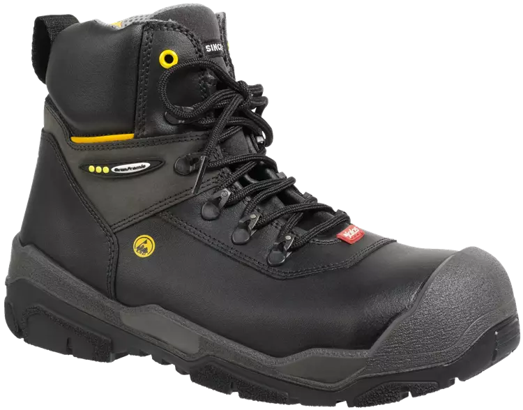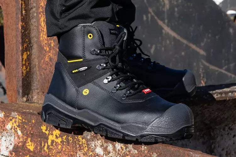 - A heat‑resistant and oil‑resistant nitrile outsole provides excellent grip and stability in tough outdoor environments, supported by double shock‑absorption zones with PORON® XRD® and the Ergothan Shock Absorption System for reduced strain during long workdays.