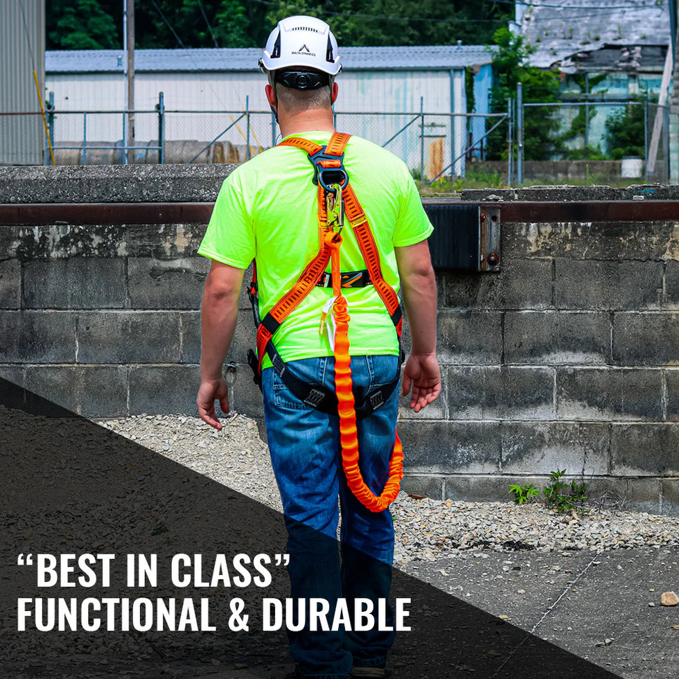 - Internal shock absorber limits average arresting force to 900 lbs or less, helping protect workers during fall events.